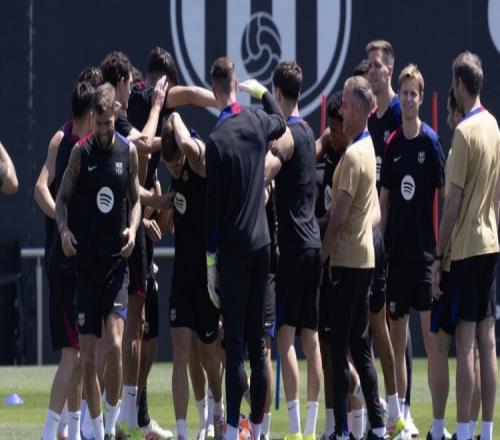 训练开始前的拍头仪式成为焦点。除了寿星伊尼戈,德容、库巴西、佩德里、奥尔莫和费尔明等球员也加入了这场欢乐互动,德国队前主帅勒夫更亲临训练场,向同胞特尔施特根当面祝贺西甲夺冠。